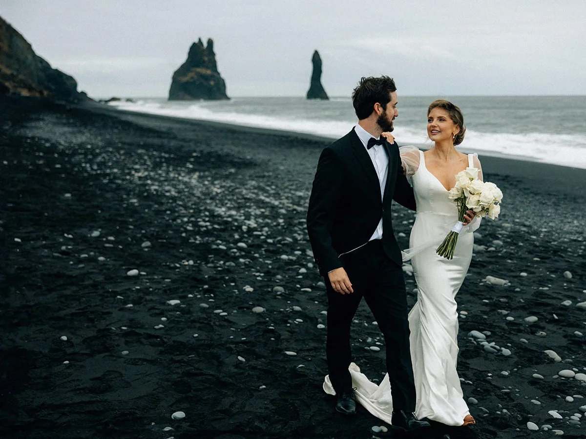 Emelyne & Bishal’s Iceland elopement was a true adventure – as winter weddings in Iceland often are. ust days before the ceremony, a powerful storm swept across the island, grounding all flights for two days and making everything feel uncertain.